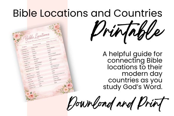A helpful guide for connecting Bible locations to their modern day countries as you study God’s Word.